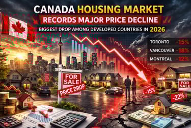 The Canada housing market is currently undergoing a noticeable correction phase. After years of rapid price appreciation, home values across the country have adjusted downward, making Canada one of the advanced economies experiencing a significant real estate price reset.