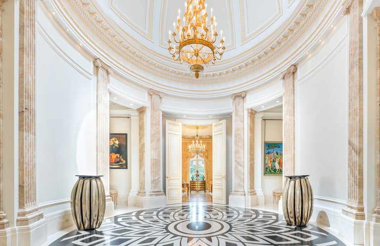 Built with thousands of hand-finished limestone elements and shaped over years of meticulous planning, the estate reflects an extraordinary level of craftsmanship. From its stately façade to the finely detailed interiors, every space carries a sense of permanence and purpose.